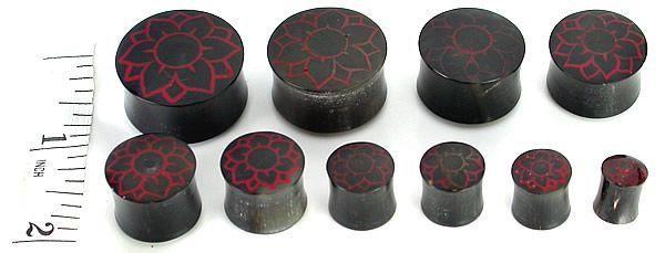 Магазин ПИРСИНГ Плаги Плаги Плаг из рога с красным нарисованным цветком